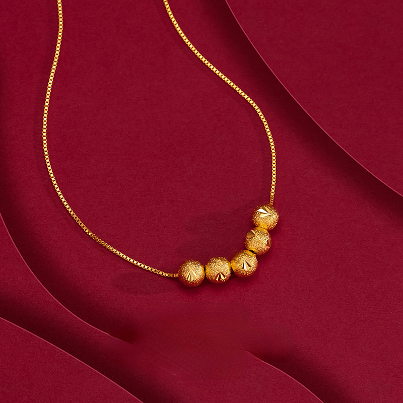 Pure 24k Gold Color Frosted Lucky Beads Necklaces Chain for Women Girl Golden Chocker Chains Wedding Fine Jewelry Gifts Not Fade – Sumsfashion